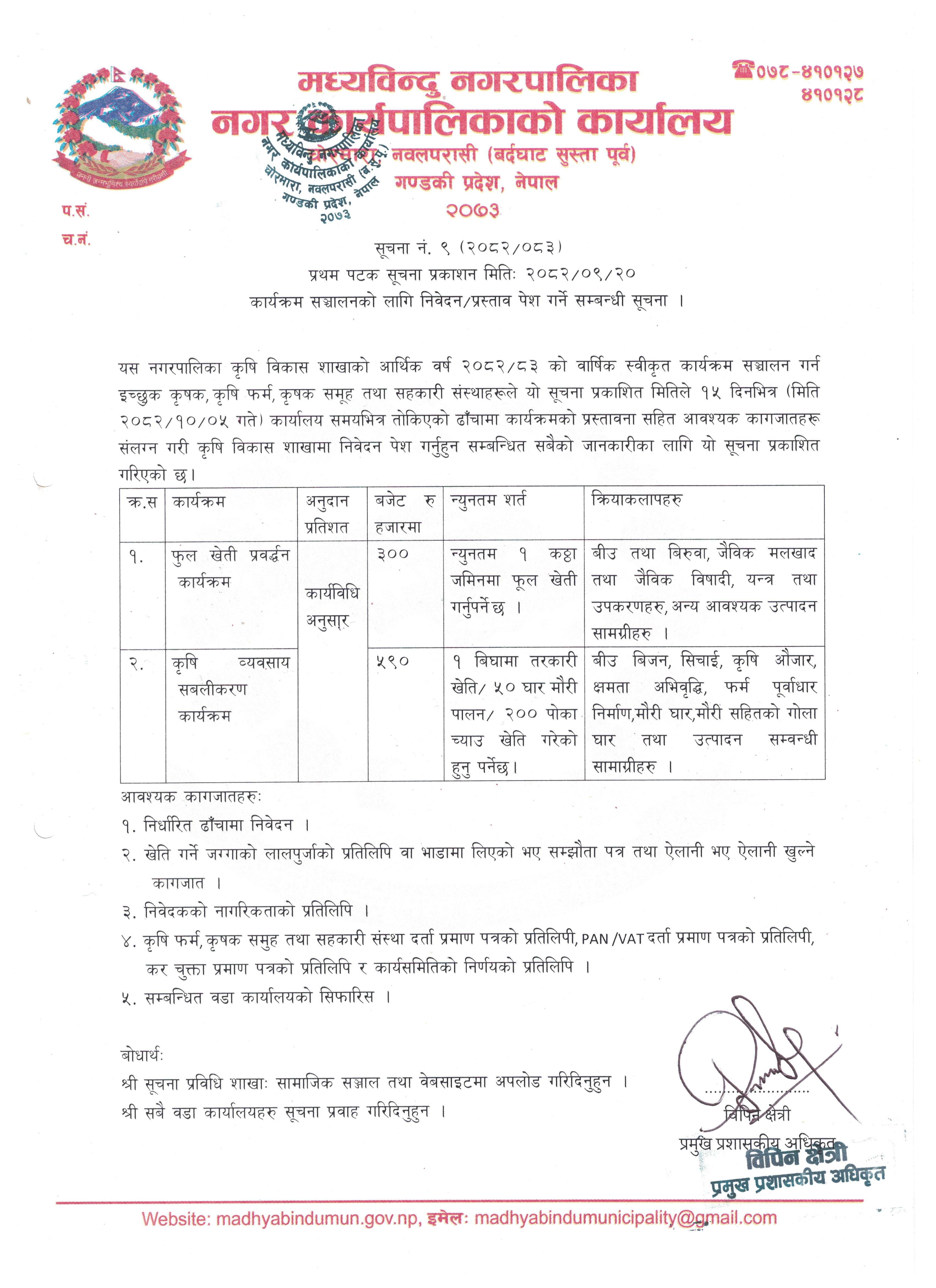 Madhyabindu MunicipalityOffice of the Municipal Executive