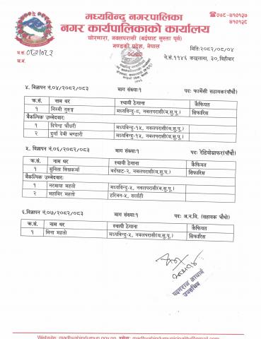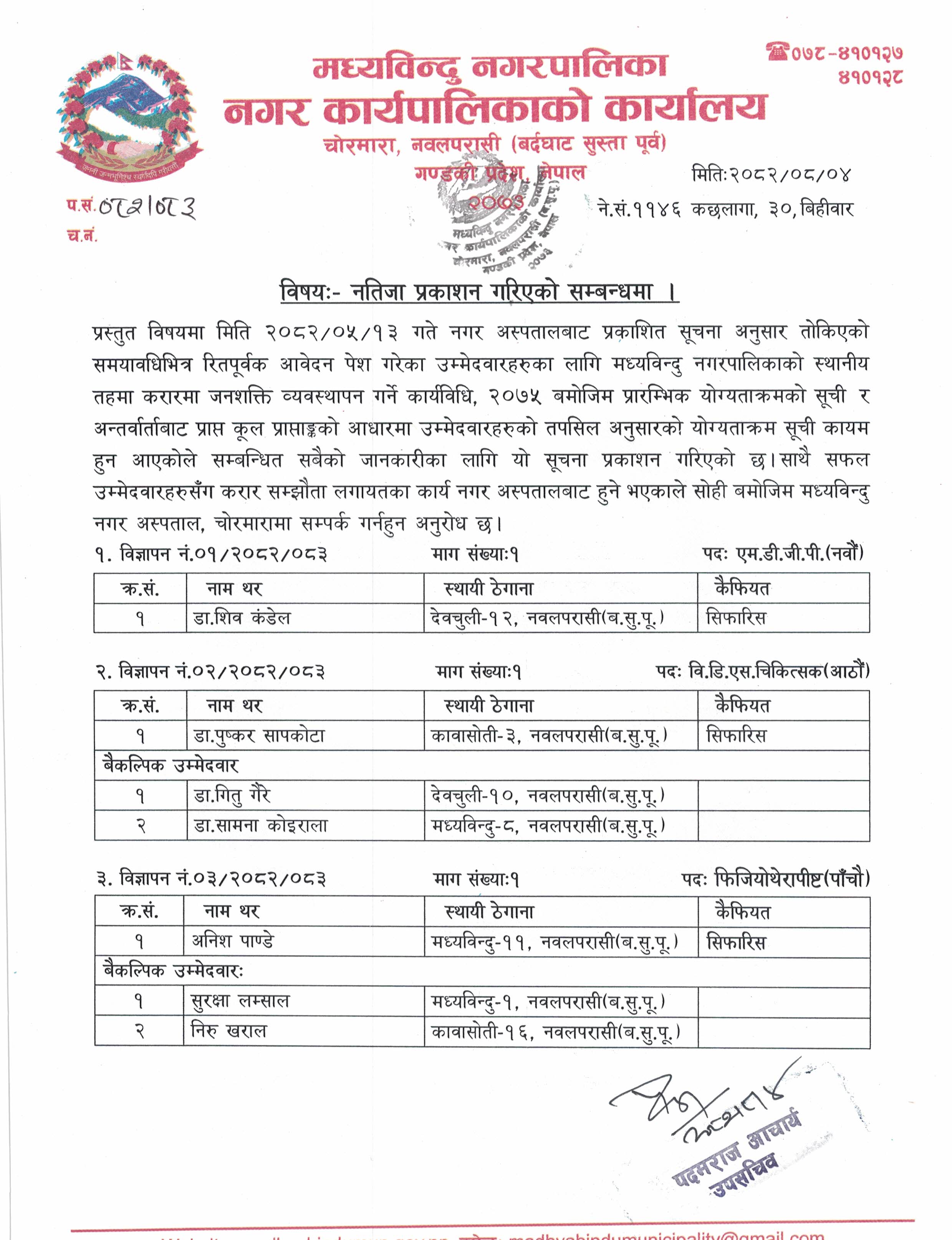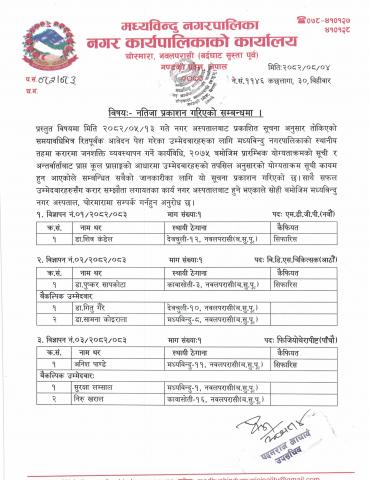 नतिजा प्रकाशन गरिएको सम्बन्धमा ।