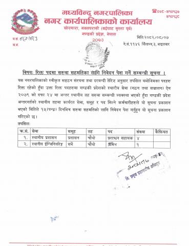 मध्यविन्दु नगरपालिका नगर जलश्रोत समिति नवलपरासी (ब.सु.पू) द्वारा जारी गरिएको हकदावी सम्बन्धि ३५ दने सार्वजनिक सूचना