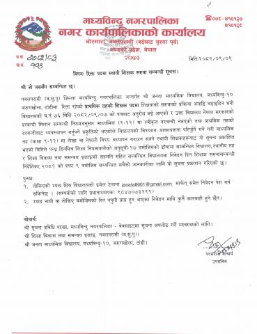 रिक्त पदमा स्थायी शिक्षक सरुवा सम्बन्धी सूचना।