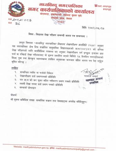 » विद्यालय लेखा परीक्षण सम्बन्धी आशय पत्र सम्बन्धमा