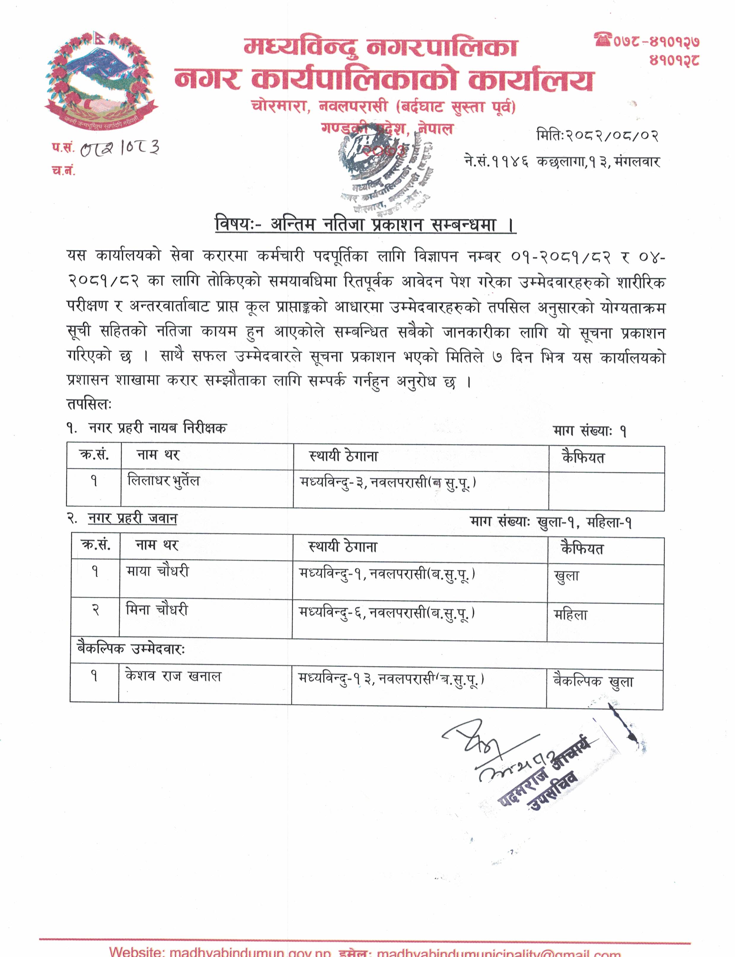अन्तिम नतिजा प्रकाशन सम्बन्धमा ।