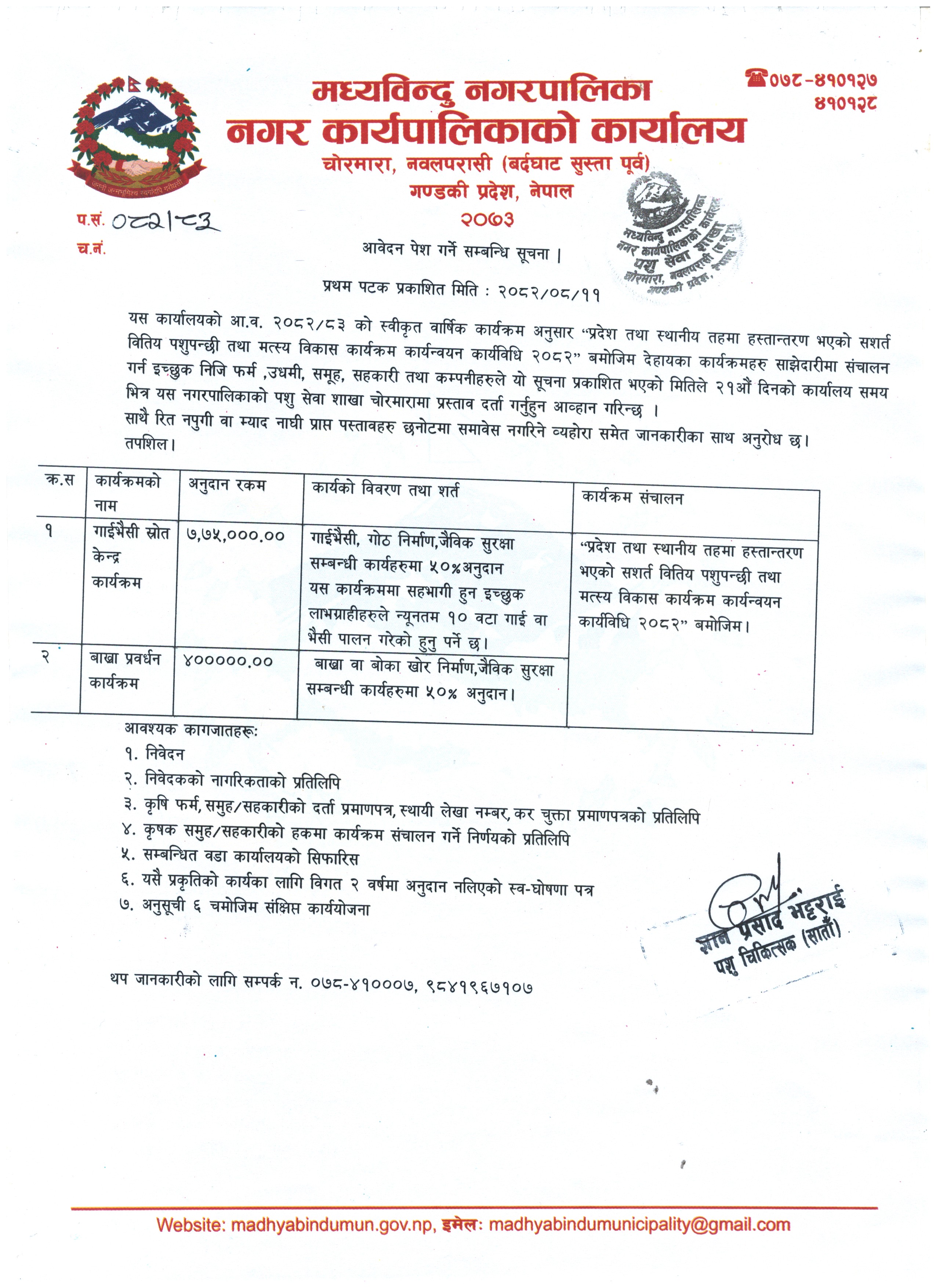 info@madhyabindumun.gov.np, madhyabindumunicipality@gmail.com