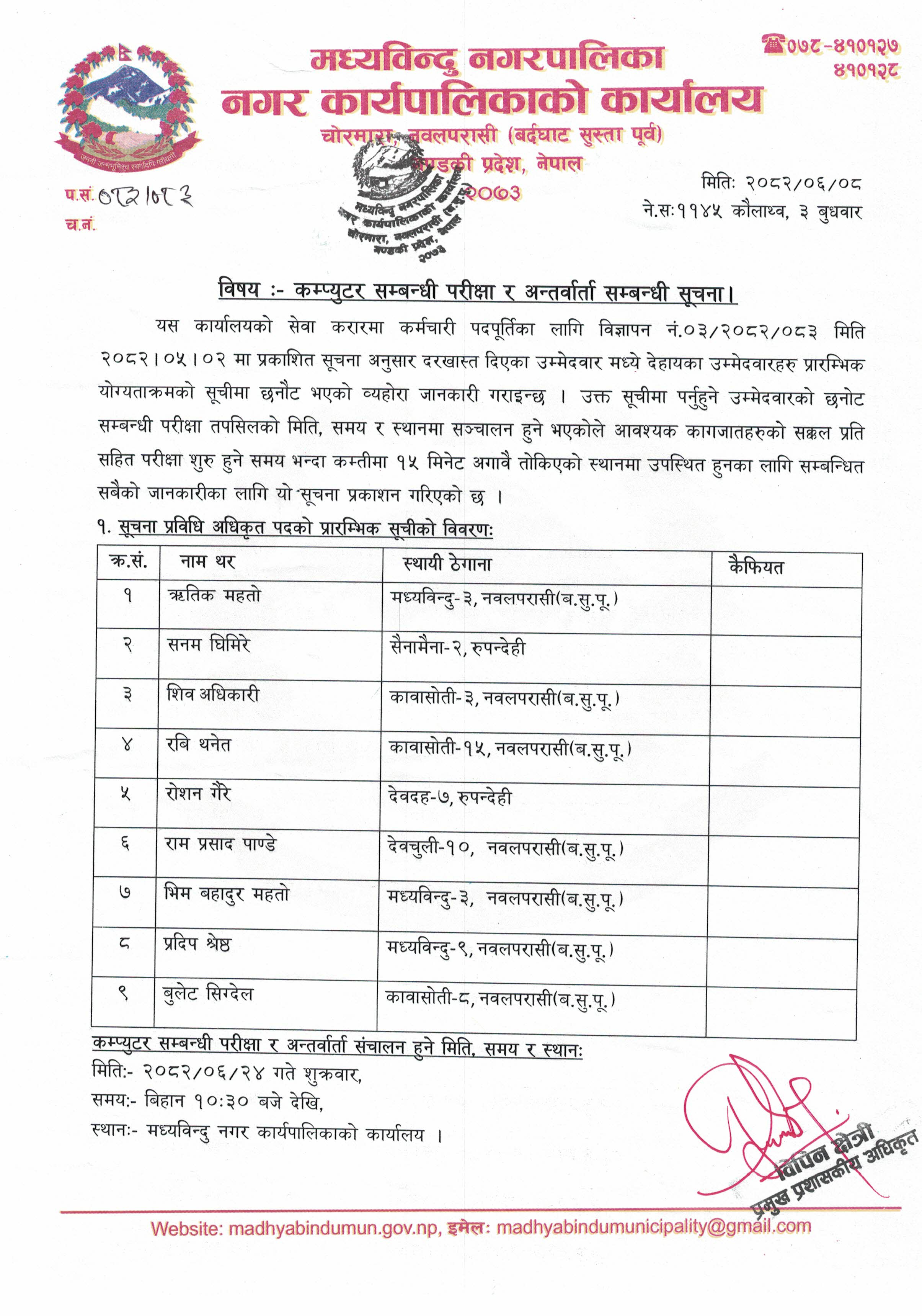 » कम्प्युटर सम्बन्धी परीक्षा र अन्तर्वार्ता सम्बन्धी सूचना ।
