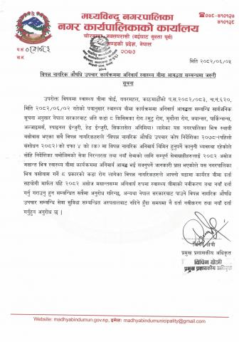 विपन्न नागरिक औषधि उपचार कार्यक्रममा अनिवार्य स्वास्थ्य बीमा आवद्धता सम्बन्धमा जरुरी सूचना ।