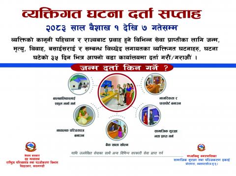 » व्यक्तिगत घटना दर्ता सप्ताह २०८३ साल बैशाख १ देखि ७ गतेसम्म