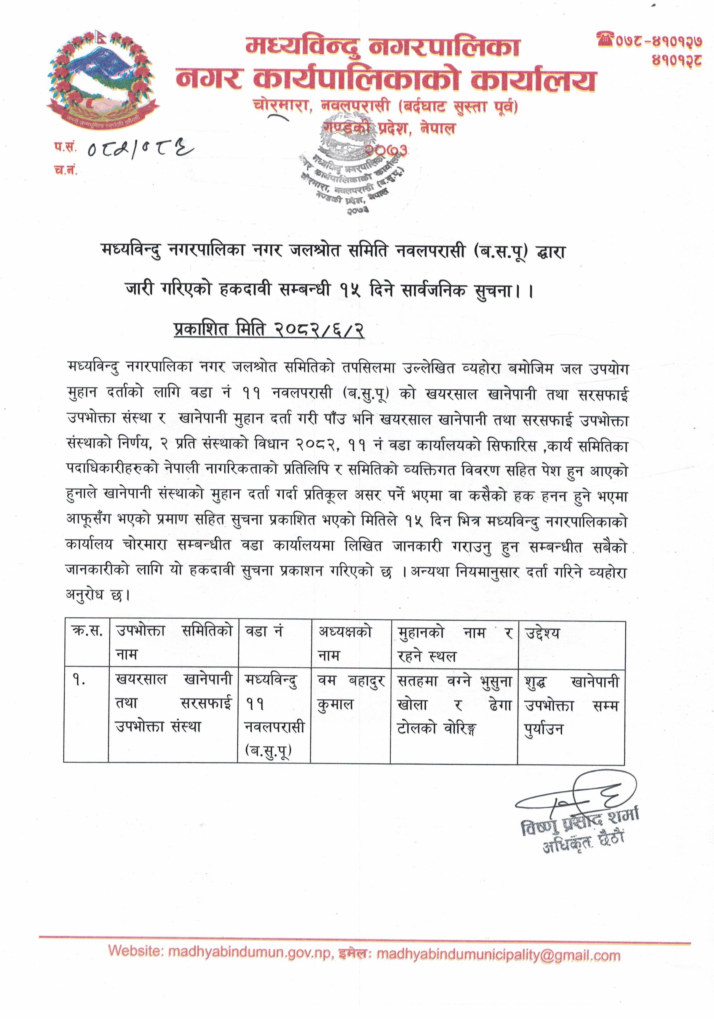 » हकदावी सम्बन्धी १५ दिने सार्वजनिक सूचना ।