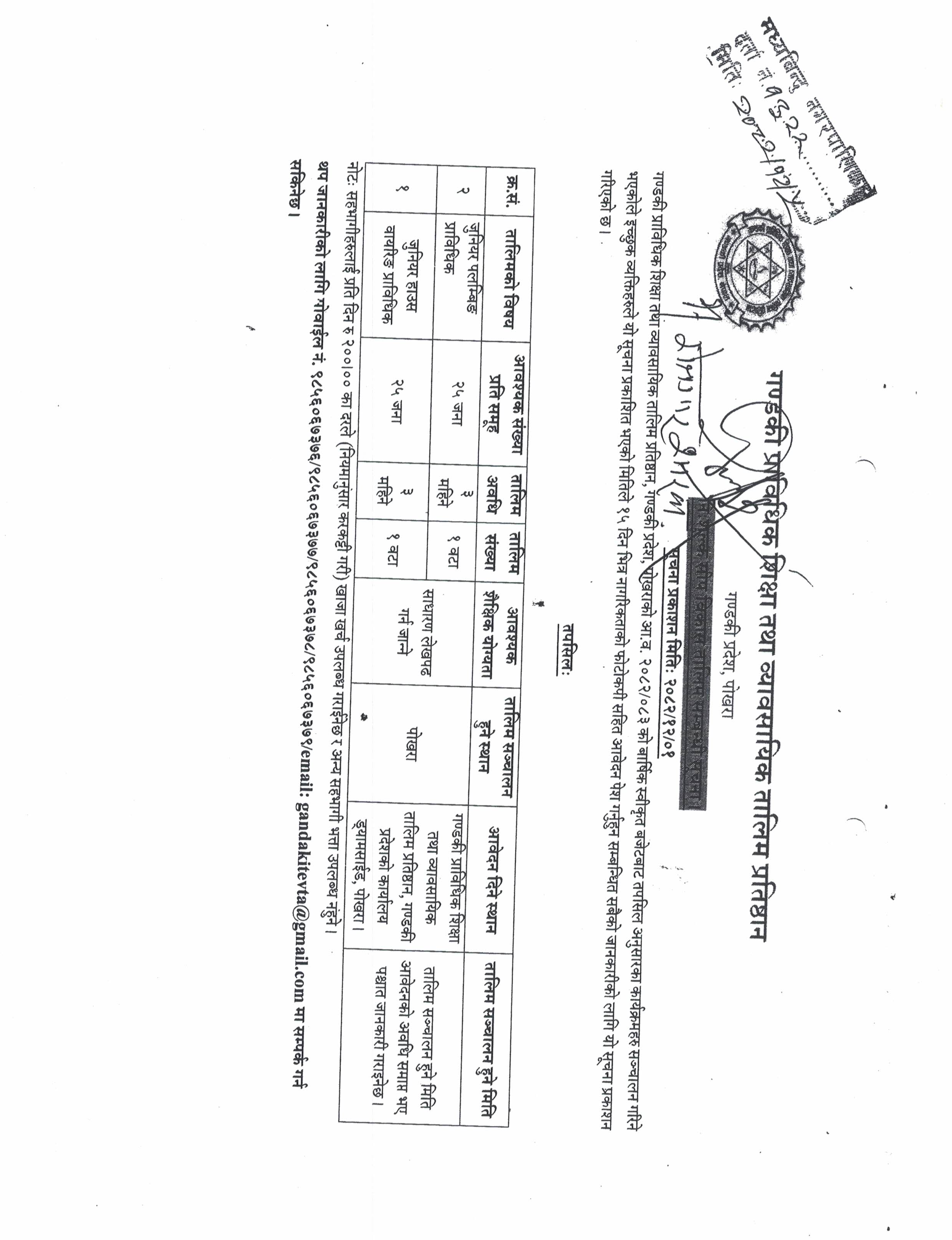 » जुनियर पलम्बिङ प्राविधिक र जुनियर हाउस वायरिङ प्राविधिक तालिम सम्बन्धी सूचना
