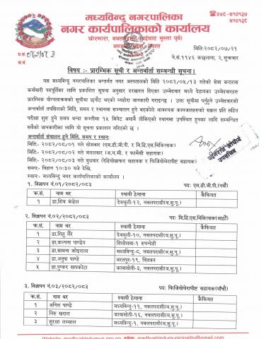 प्रारम्भिक सूची र अन्तर्वार्ता सम्बन्धी सूचना।