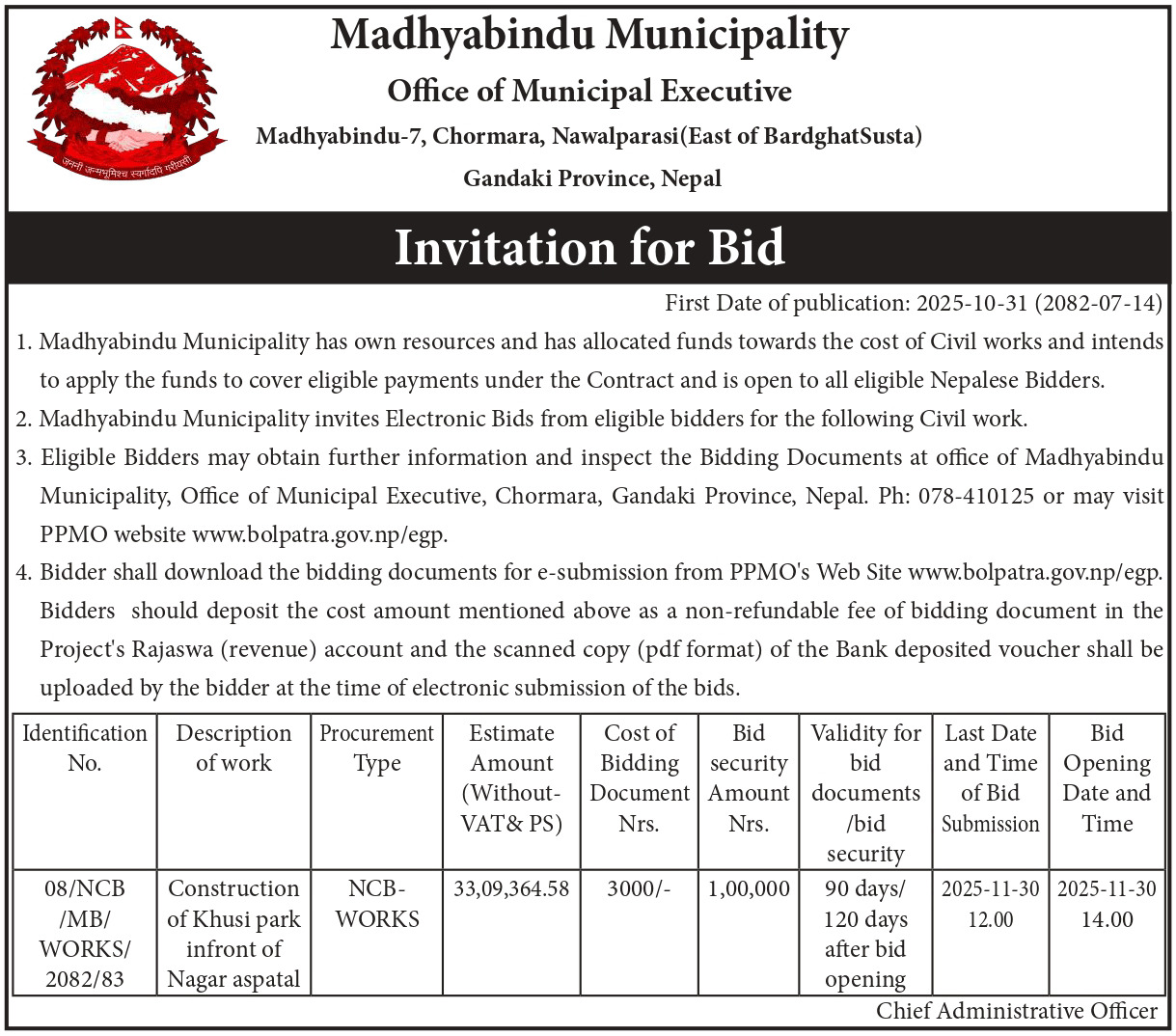 » बाेलपत्र आह्वान सम्बन्धी सूचना ।