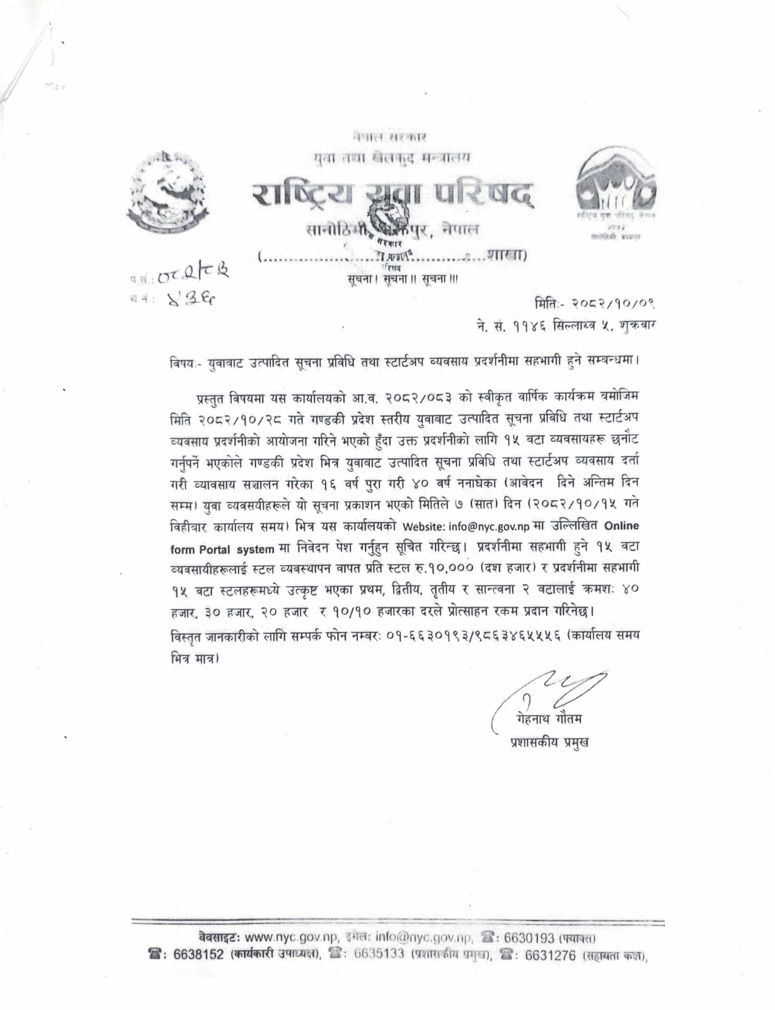 » युवावाट उत्पादित सूचना प्रविधि तथा स्टार्टअप व्यवसाय प्रदर्शनीमा सहभागी हुने सम्बन्धमा ।