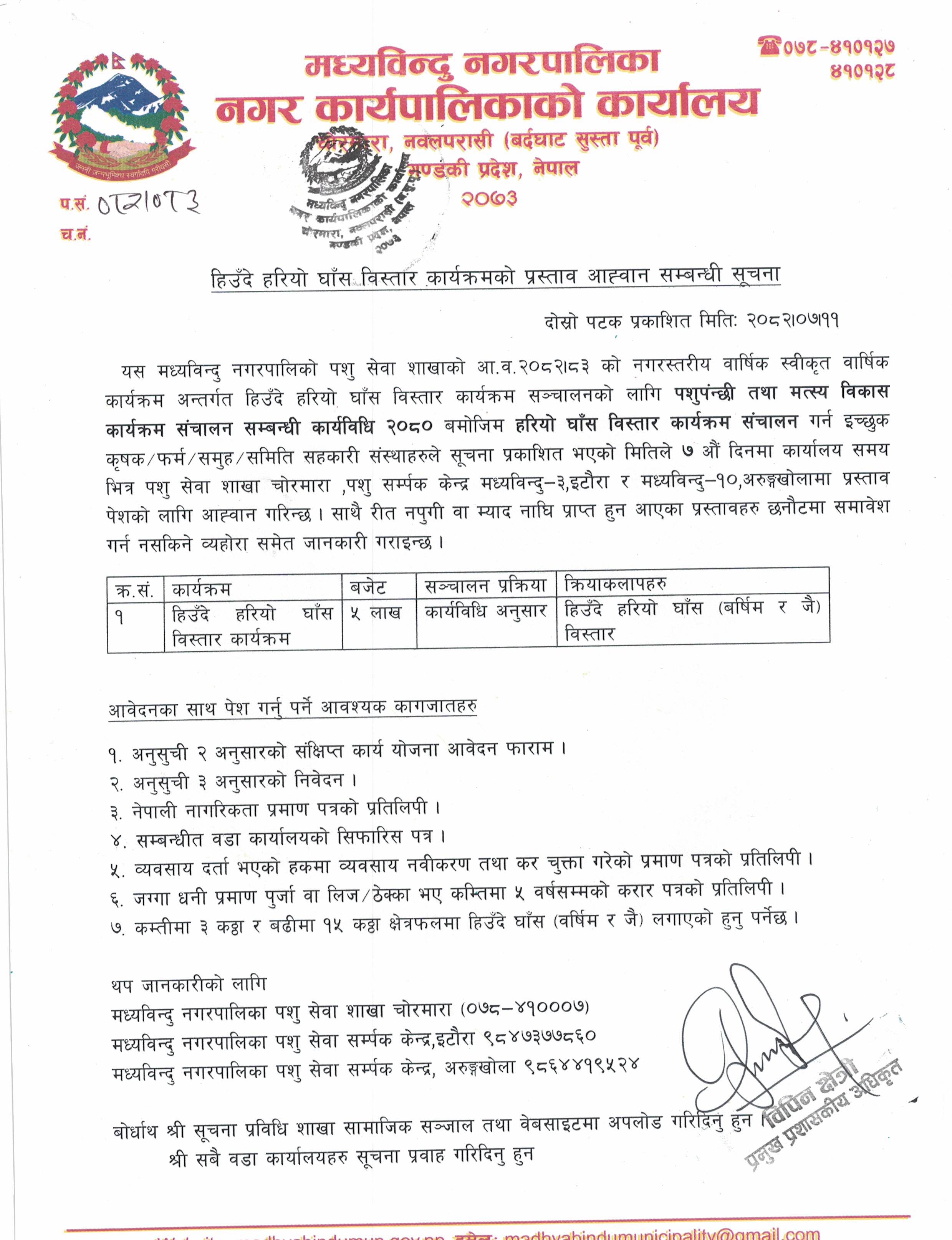 हिउँदे हरियो घाँस विस्तार कार्यक्रमको प्रस्ताव आह्वान सम्बन्धी सूचना