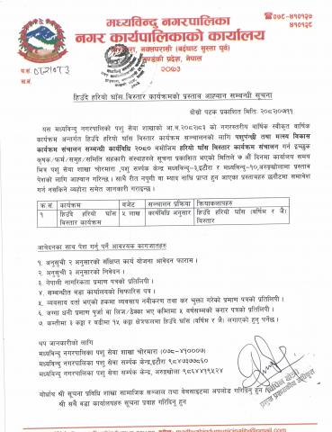 » हिउँदे हरियो घाँस विस्तार कार्यक्रमको प्रस्ताव आह्वान सम्बन्धी सूचना